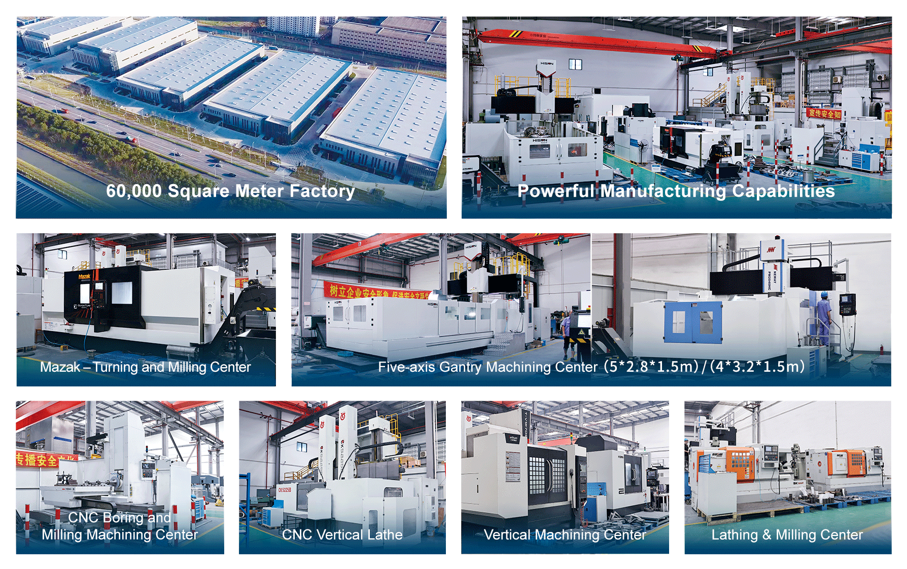 Advanced Equipment: Our production lines are equipped with high-precision machinery, including Mazak- Turning and Milling Center, Large Gantry-type 5-axis Machining Center, CNC Boring and Milling Machining center, CNC Vertical Lathe, and Vertical Machining Center, which ensures robust production and quality control capabilities.