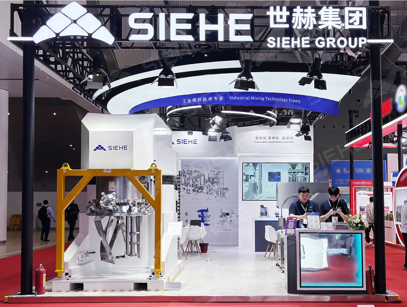To address key challenges in fluorosilicone material production, SIEHE Group showcased a range of advanced equipment, including the Automatic Adhesive Complete Production Line, Continuous Dispersing and Emulsifying Machine, Vertical Vacuum Drying System, Reciprocating Butterfly Dual-Shaft Disperser,and Vacuum Disperser with Scraper.The Automatic Adhesive Complete Production Line is designed for high-viscosity materials (up to 10,000 Pa.s). It is equipped with an advanced HMI intelligent control system that enables full automation, ensuring high efficiency and stability. The Continuous Dispersing and Emulsifying Machine, with its versatile emulsifying head combinations, meets diverse process requirements and is ideal for preparing emulsions or suspensions with larger particle sizes and a narrow particle size distribution. Furthermore, the Lab Double Planetary Mixer and 500L Double Planetary Dispersing Mixer demonstrated SIEHE’s seamless capabilities from R&D to large-scale production, highlighting their technical strength and comprehensive integrated equipment solutions.